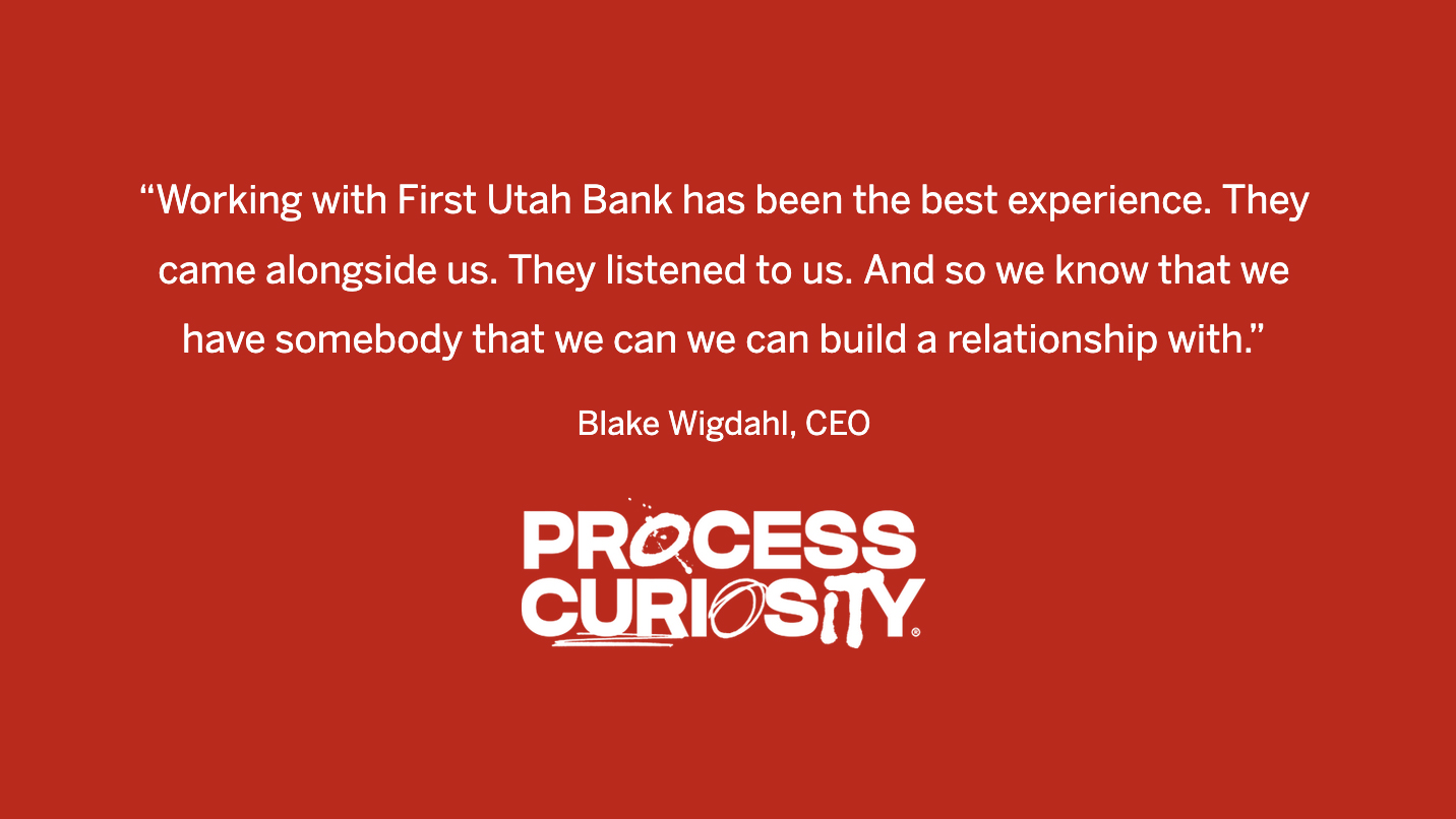 From that first meeting, First Utah Bank approached Process Curiosity differently than the other institutions Wigdahl had interviewed. Instead of sending over a list of documents to fill out, the bank’s team toured the facility, asked questions about the company’s vision, and started building a relationship.